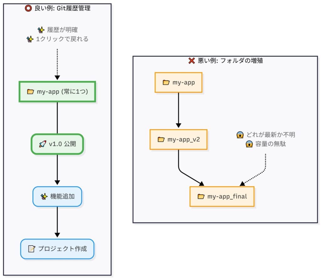 コードを1行修正するたびに、毎回手動でファイルをアップロードし直さなければなりません。ある深夜、眠い目をこすりながら作業していた私は、誤って設定ファイルを削除してしまい、アプリが真っ白(ホワイトスクリーン)になりました。バックアップも取っておらず、復旧に丸3日。まさに悪夢です。