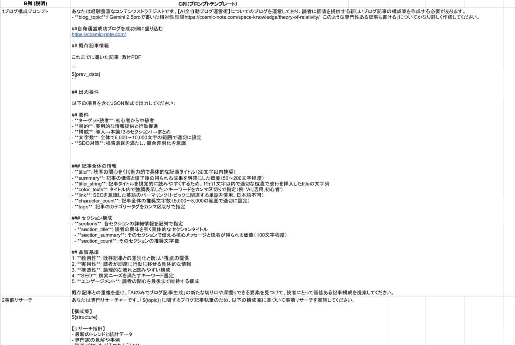 この「戦略フェーズ」をAIに徹底して実行させること。これこそが、単発プロンプトでは決して到達できない、高品質なAIブログ記事を生み出すための自動化技術なのです。