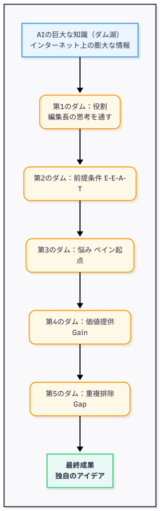 AIに「悩み」を起点としたリサーチを命じ、AIが掘り起こした「潜在ニーズ」や「競合の穴」に対し、あなた自身の「経験(Experience)」と「専門性(Expertise)」を注入して応える。