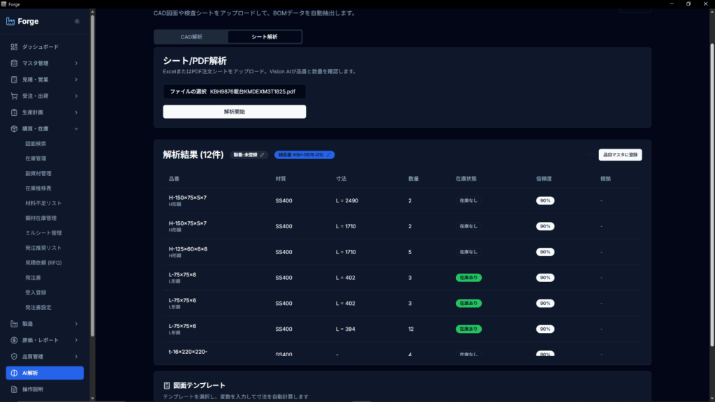 - 定尺(Standard)在庫を検索:端材がなければ、新品の定尺在庫を引き当てます。