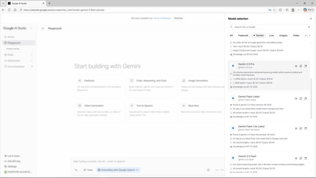 私たちはここで、Googleが誇る最新鋭のAIモデル「Gemini(ジェミニ)」の”脳”を直接いじります。スマホアプリ版のGeminiが「綺麗にラッピングされた既製品」だとすれば、Google AI Studioで触れるのは「工場出荷前のむき出しのエンジン」です。