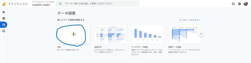 - レポート一覧の一番上にある「空白」のテンプレート(「+」マーク)をクリックします 。