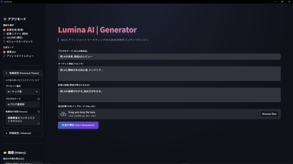 こうして開発が始まったのが、完全自動化ブログエンジン「Lumina AI」です。